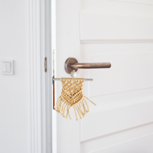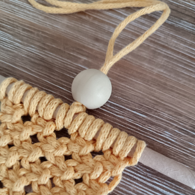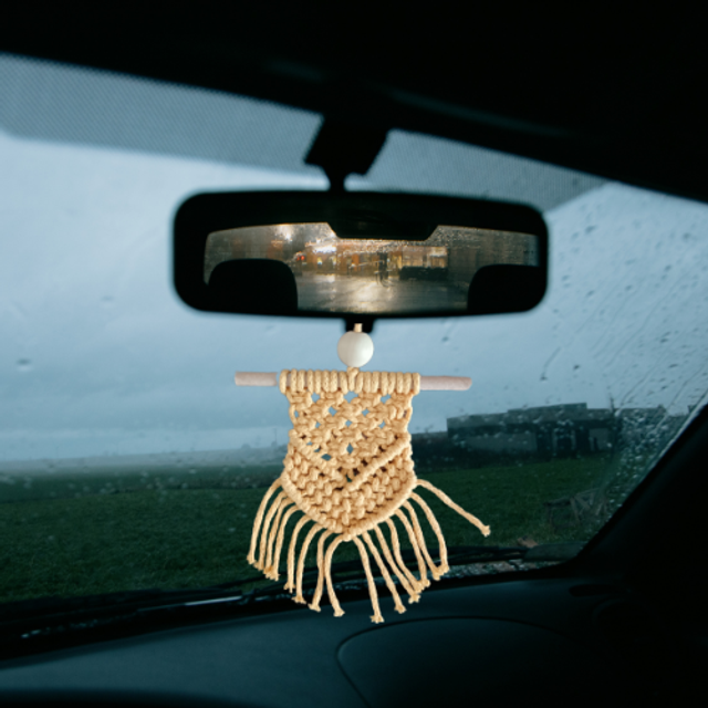 Déposez 1 à 2 gouttes d'huile essentielle de votre choix sur la perle en bois et accrochez ce diffuseur en macramé au rétroviseur de votre voiture ou dans une pièce de votre choix (toilettes, porte, meuble...).